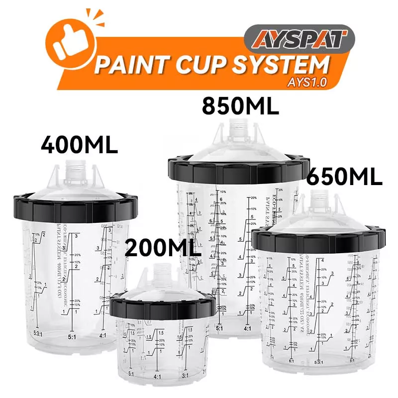 AYSPAT 200ML системот за чаши за боја за еднократна употреба 1.0 е дизајниран поради зголемената побарувачка од сликарите за поефективно сликање. Може да заштеди трошоци и да реализира сликање со повеќе агли. Силно го препорачуваме да се користи во ситуации со сликање како автомобилска, индустриска, домашна и други области. Побарајте ја чашата со пиштол за еднократна употреба направена во Кина, која ќе ви донесе незаборавно сликарско искуство. Ние сме изворниот производител на системот за чаши за боја за еднократна употреба, можете да не контактирате преку официјалната веб-страница или социјалните медиуми. Ние исто така можеме да обезбедиме бесплатен дизајн и испорака на примероци.