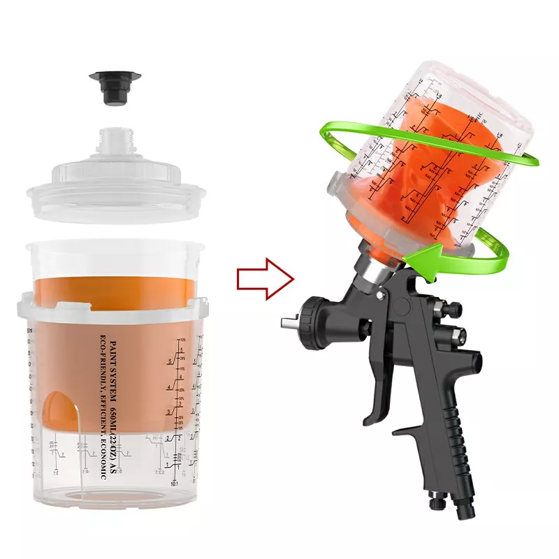 Систем за чаши за распрскувачи со распрскувачи од 400мл за распрскувачи е внимателно дизајниран систем за спреј за распрскувачи на HVLP со одлични перформанси и широка применливост. Системот може да се користи со различни брендови на пиштоли со спреј од посветен адаптер за серии AS3.0, кои обезбедуваат компатибилност и стабилност во различни сценарија за прскање.