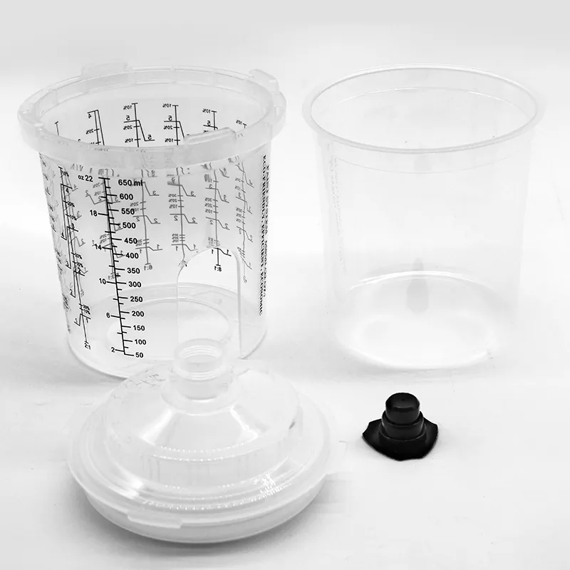 650ml Купот за пиштол за распрскувач за распрскувачки за еднократна употреба е систем за чаши за спреј за еднократна употреба, дизајниран за поправки од 3 панели, тој е погоден за области за кои е потребна 22 fl Oz (650 ml) или помалку материјал. Заснован на серијата 2.0, тој има надграден дизајн на надворешната чаша. Надворешната чаша користи интегрирана брава за да го заклучи капакот на чашата, елиминирајќи ја компонентата на јаката, со што е полесно да се замени внатрешната чаша. Нашата фабрика има чаши за еднократна употреба на залиха, што може да ги задоволи потребите за брза испорака на не-обичајни големо. Време на испорака на складирање 1-2 дена. Во исто време, ние исто така нудиме услуги за OEM \ ODM за да ги задоволиме потребите за прилагодување на брендовите, со просечно време на испорака од 15-20 дена.