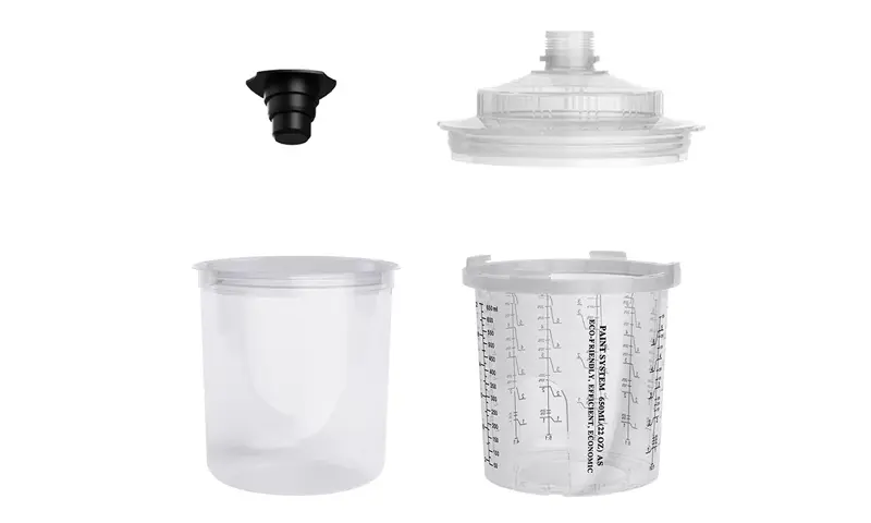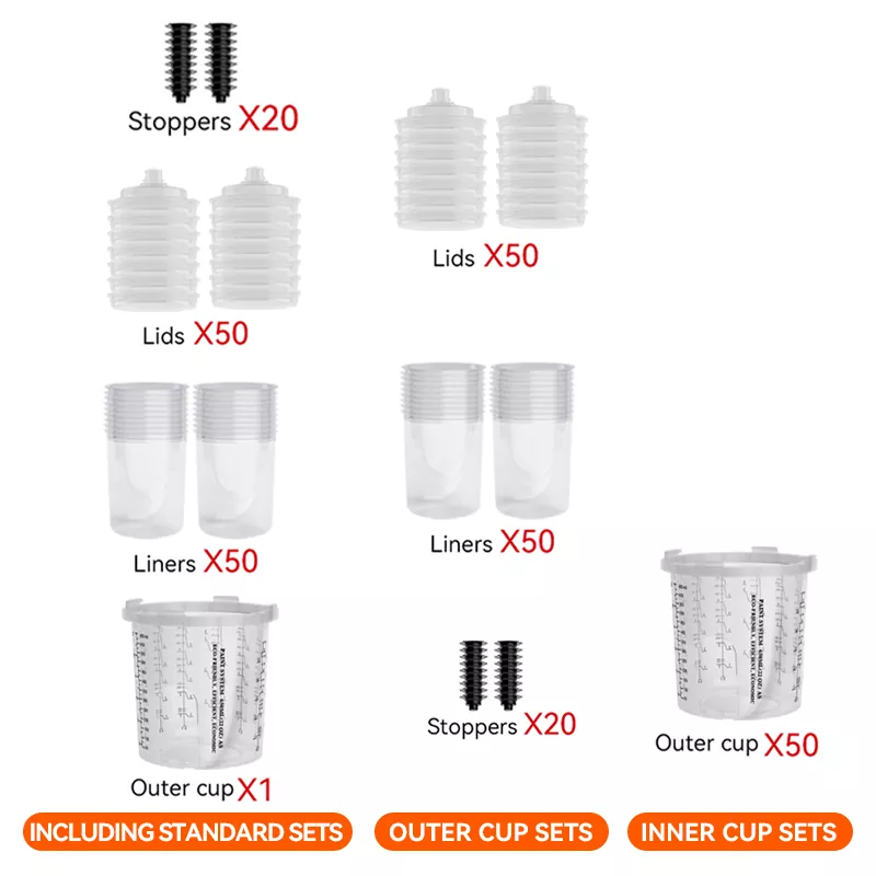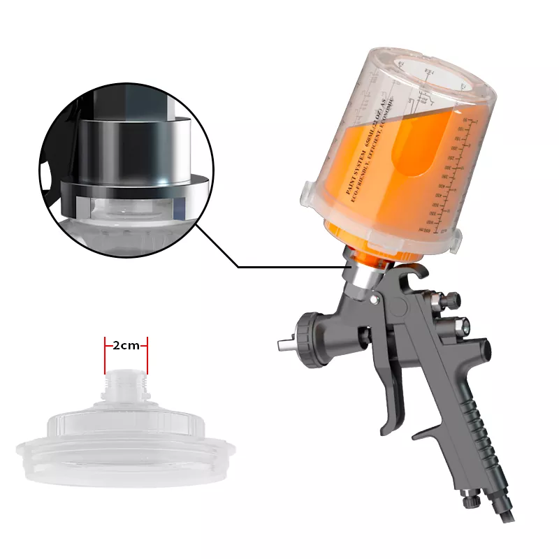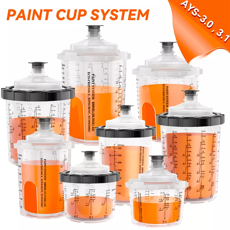 Купот за пиштол за распрскувач за распрскувач обезбедува најразлични опции за капацитет (вклучувајќи 200ml, 400ml, 650ml, 850ml), кои можат да ги задоволат различните потреби за прскање од поправки од 1 панел до поправки од 4 панели и да ја намалат фреквенцијата на замена на чашата.