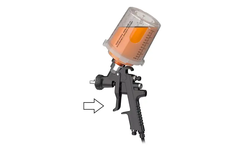 lf има остатоци од боја, запечатете ја со затка, превртете ја чашата за пиштол за спреј и чувајте ја за идна употреба