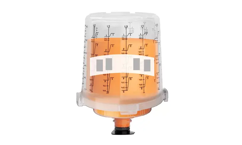 Надворешната чаша може да се прилагоди со лого и скала, што овозможува да биде уникатно брендирана чаша за спреј за еднократна употреба.
