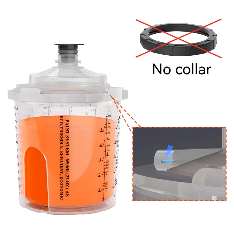 Јаката , која формира тесна врска помеѓу чашата и капакот, одамна е клучна компонента во системите за чаши за спреј за еднократна употреба. За време на зафатените сесии за сликање, сликарите често ја губат или оштетуваат јаката, спречувајќи ја чашата за спреј за еднократна употреба да функционира правилно, создавајќи значителни предизвици.