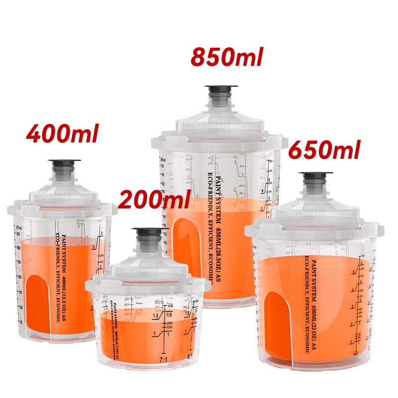 - AYS3.1Куп за спреј за еднократна употребае изработен од материјали отпорни на растворувач и отпорни на влијанија. Поддржува широк спектар на облоги, вклучувајќи латекс боја, боја базирана на нафта и лак, ефикасно елиминирајќи ги проблемите со корозија кои обично се поврзани со традиционалните чаши за спреј.